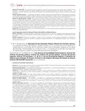 AUDITORÍA SUPERIOR DE FISCALIZACIÓN DEL ESTADO DE OAXACA INFORME ESPECÍFICO CUENTA PÚBLICA MUNICIPAL 2022