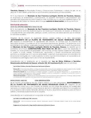 Tlacolula, Oaxaca los Resultados Finales y Observaciones Preliminares, a efecto de que, en un INFORME ESPECÍFICO CUENTA PÚBLICA MUNICIPAL 2022