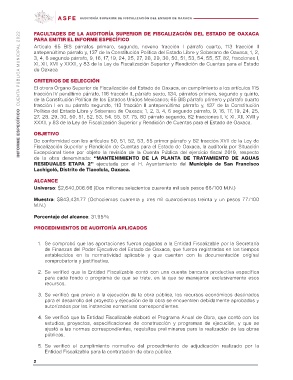 INFORME ESPECÍFICO CUENTA PÚBLICA MUNICIPAL 2022 AUDITORÍA SUPERIOR DE FISCALIZACIÓN DEL ESTADO DE OAXACA