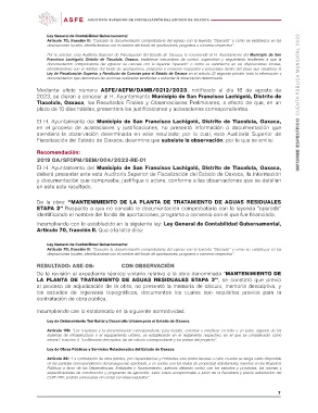 Por lo anterior, esta Auditoría Superior de Fiscalización del Estado de Oaxaca, le recomendó al H. Ayuntamiento del Municipio de San