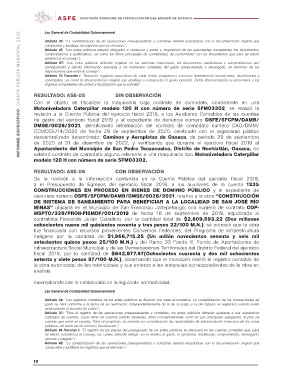 De la revisión a la información contenida en la Cuenta Pública del ejercicio fiscal 2019,