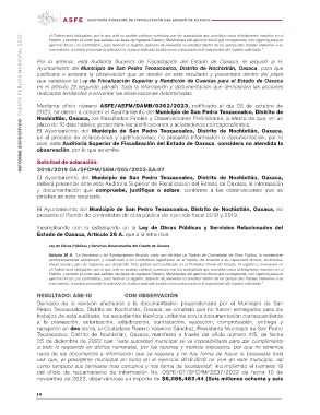 Derivado de la revisión efectuada a la documentación proporcionada por el Municipio de San