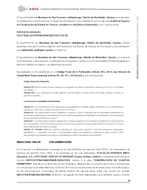 de Fiscalización del Estado de Oaxaca, considera no atendida la observación; por lo que se emite: