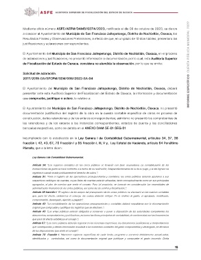 de aclaraciones y justificaciones, no presentó información o documentación; por lo cual, esta Auditoría Superior