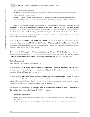 el artículo 22 segundo párrafo de la Ley de Fiscalización Superior y Rendición de Cuentas para el Estado de