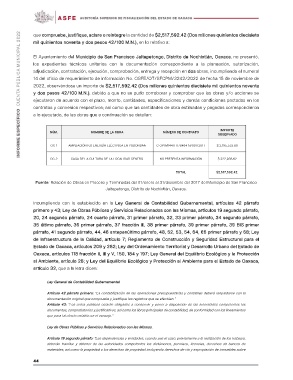 Fuente: Relación de Obras en Proceso y Terminadas del 01/enero al 31/diciembre del 2017 del Municipio de San Francisco
