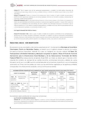 De la revisión a la documentación e información presentada por el H. Ayuntamiento del Municipio de Santa María