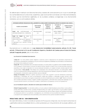 INFORME ESPECÍFICO CUENTA PÚBLICA MUNICIPAL 2022 Se detectó que el municipio conciliaciones bancarias y estados de cuenta bancarios; por lo que no acreditó que