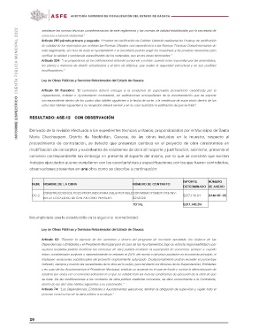 Artículo 74: “Las Dependencias, Entidades o Ayuntamientos ejecutores, tendrán la obligación de supervisar y vigilar todo el