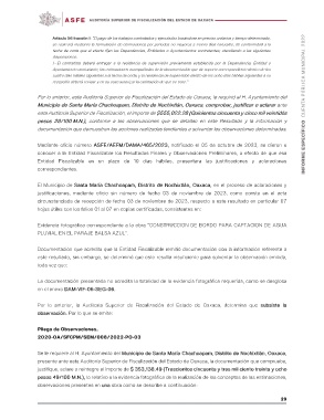AUDITORÍA SUPERIOR DE FISCALIZACIÓN DEL ESTADO DE OAXACA INFORME ESPECÍFICO CUENTA PÚBLICA MUNICIPAL 2022