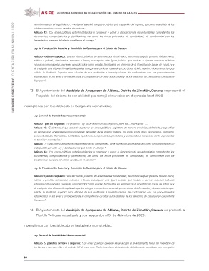 13. El Ayuntamiento del Municipio de Ayoquezco de Aldama, Distrito de Zimatlán, Oaxaca, no presentó el