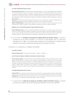 16. El Ayuntamiento del Municipio de Ayoquezco de Aldama, Distrito de Zimatlán, Oaxaca, no presentó la