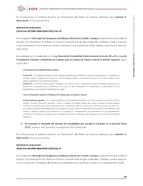 En consecuencia, la Auditoría Superior de Fiscalización del Estado de Oaxaca, determina que subsiste la