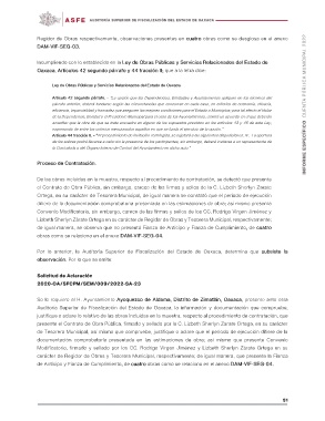 AUDITORÍA SUPERIOR DE FISCALIZACIÓN DEL ESTADO DE OAXACA INFORME ESPECÍFICO CUENTA PÚBLICA MUNICIPAL 2022