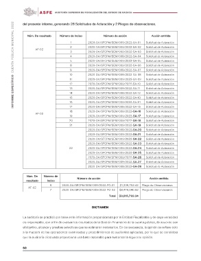 Núm. De resultado Número de Inciso Número de acción Acción emitida