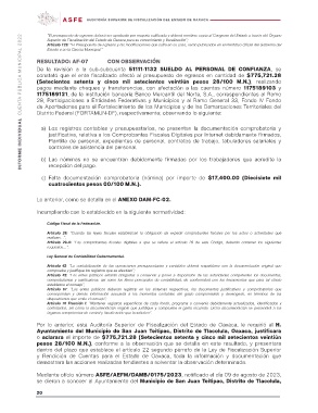 pesos 28/100 M.N.), conforme a la observación que se detalla en este resultado, y presentara