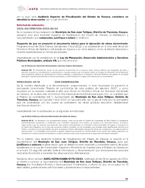 Por lo anterior, esta Auditoría Superior de Fiscalización del Estado de Oaxaca, le requirió al H.