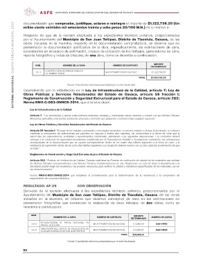 INFORME INDIVIDUAL CUENTA PÚBLICA MUNICIPAL 2022 documentación que compruebe, justifique, aclareo o reintegre el importe de $1,122,738.20 (Un