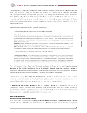 AUDITORÍA SUPERIOR DE FISCALIZACIÓN DEL ESTADO DE OAXACA INFORME ESPECÍFICO CUENTA PÚBLICA MUNICIPAL 2022