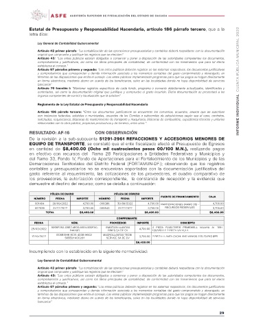 Estatal de Presupuesto y Responsabilidad Hacendaria, artículo 186 párrafo tercero, que a la