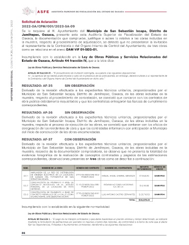 Oaxaca, la documentación que compruebe, justifique o aclare lo relativo a las obras incluidas en