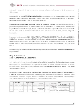 información y documentación que demuestre las acciones realizadas tendientes a solventar las observaciones INFORME ESPECÍFICO CUENTA PÚBLICA MUNICIPAL 2022