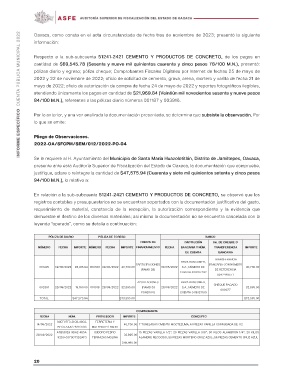 INFORME ESPECÍFICO CUENTA PÚBLICA MUNICIPAL 2022 Oaxaca, como consta en el acta circunstanciada de fecha tres de noviembre de 2023; presentó la siguiente