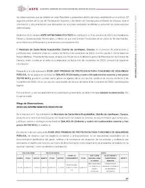 las observaciones que se detallan en este Resultado y presentara dentro del plazo establecido en el artículo 22 INFORME ESPECÍFICO CUENTA PÚBLICA MUNICIPAL 2022
