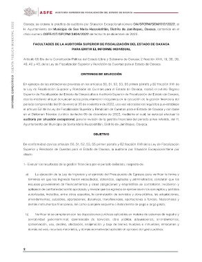 INFORME ESPECÍFICO CUENTA PÚBLICA MUNICIPAL 2022 AUDITORÍA SUPERIOR DE FISCALIZACIÓN DEL ESTADO DE OAXACA