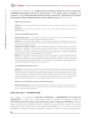 TRANSPORTE, se constató que el ente fiscalizado afectó el Presupuesto de Egresos en cantidad de