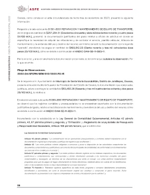 INFORME ESPECÍFICO CUENTA PÚBLICA MUNICIPAL 2022 AUDITORÍA SUPERIOR DE FISCALIZACIÓN DEL ESTADO DE OAXACA