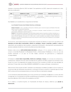 Por lo anterior, esta Auditoría Superior de Fiscalización del Estado de Oaxaca, le requirió al H. Ayuntamiento del