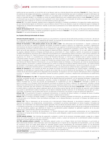 Artículo 30 fracciones V y VI: “Además de lo señalado en el artículo 71 de la Ley General, y en esta Ley, los Municipios del Estado, deberán