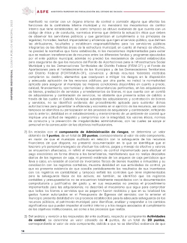 por el ente público municipal, además no precisó los mecanismos de control establecidos