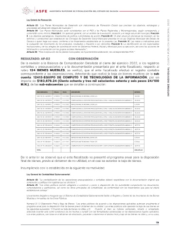 RESULTADO: AF-02 CON OBSERVACIÓN INFORME INDIVIDUAL CUENTA PÚBLICA MUNICIPAL 2022