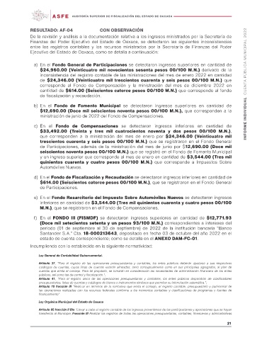 Finanzas del Poder Ejecutivo del Estado de Oaxaca, se detectaron las siguientes inconsistencias