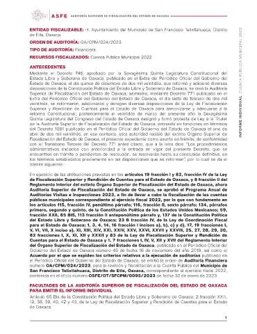 ENTIDAD FISCALIZABLE: H. Ayuntamiento del Municipio de San Francisco Telixtlahuaca, Distrito