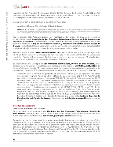 Francisco Telixtlahuaca, Distrito de Etla, Oaxaca, del Ejercicio Fiscal 2022, no fue publicado, por lo