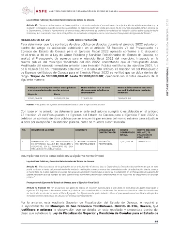 en el artículo 46 de la Ley de Obras Públicas y Servicios Relacionados del Estado de Oaxaca, se