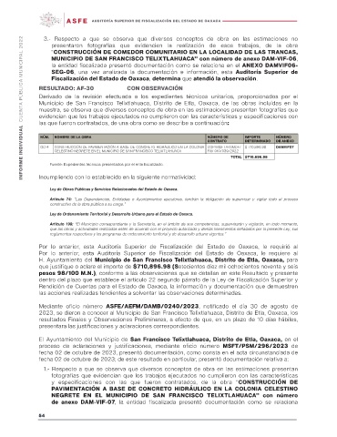 Municipio de San Francisco Telixtlahuaca, Distrito de Etla, Oaxaca, de las obras incluidas en la