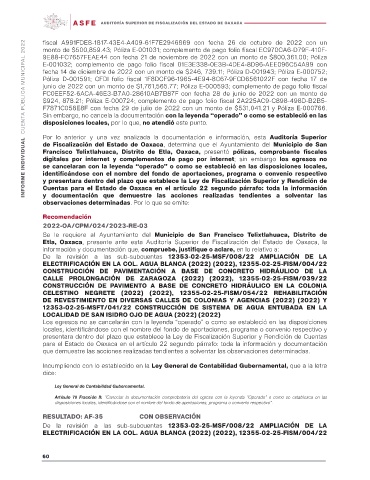 Francisco Telixtlahuaca, Distrito de Etla, Oaxaca, presentó pólizas, comprobante fiscales