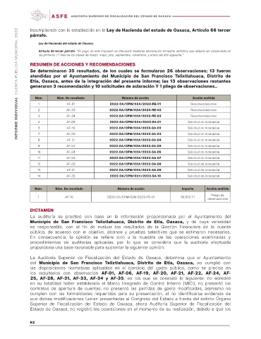 Etla, Oaxaca, antes de la integración del presente informe; las 13 observaciones restantes