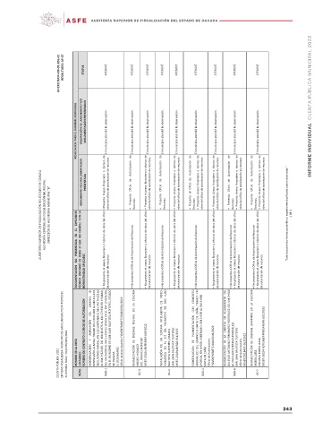 CUENTA PÚBLICA: 2022 AUDITORÍA NÚM.: OA/CPM/025/2023 NOMBRE DE LA OBRA NÚM. LOCALIDAD MODERNIZACIÓN OAD-1 DE OAXACA EL DESENGAÑO REHABILITACIÓN MIGUEL HIDALGO OC-3 COL. MIGUEL HIDALGO INSTALACIÓN VIGILANCIA OC-4 CONSTRUCCION HIDRAULICO OAD-5 MATA DE CAÑA Oficio de Autorización: REHABILITACIÓN OAD-6 Oficio de Autorización: MSJBT/20184/IF-013/2022 REHABILITACIÓN MARÍA LUISA OC-7 COLONIA MARÍA LUISA