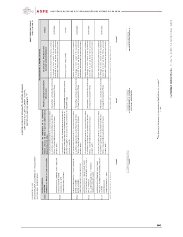 NO PRESENTADA NO QUE O OBRA DE • El Acta Acuerdo de Excepción a la Licitación Pública no indica en cuál de los supuestos del artículo 43 de la Ley de Obras Públicas y Servicios Relacionados del Estado de Oaxaca • No presentó la invitación al representante de la Contraloría o del Órgano Interno de Control del Ayuntamiento en el acto de presentación y apertura de proposiciones del procedimiento de • El Acta Acuerdo de Excepción a la Licitación