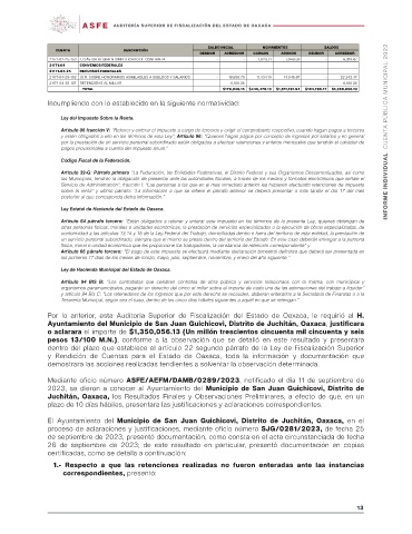 pesos 13/100 M.N.), conforme a la observación que se detalló en este resultado y presentara