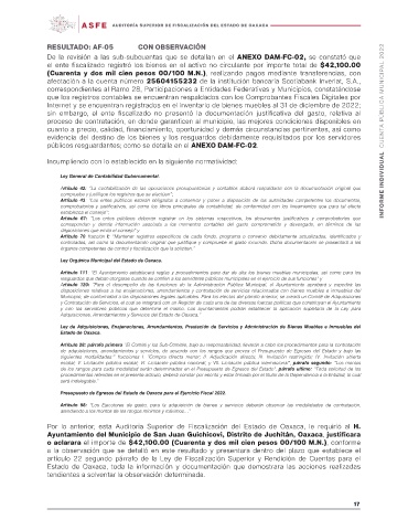 Por lo anterior, esta Auditoria Superior de Fiscalización del Estado de Oaxaca, le requirió al H.