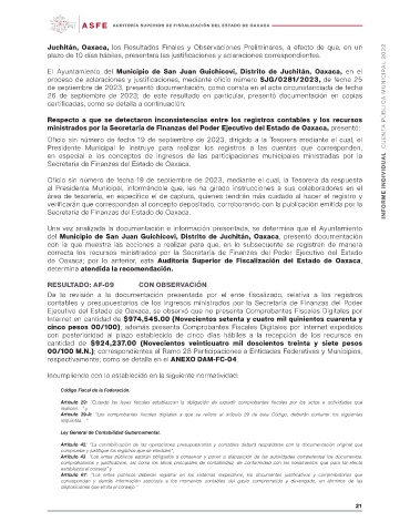 Juchitán, Oaxaca, los Resultados Finales y Observaciones Preliminares, a efecto de que, en un