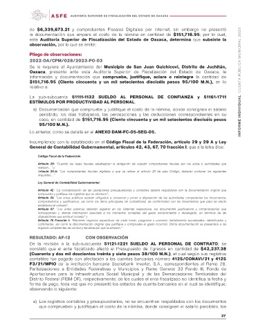 esta Auditoría Superior de Fiscalización del Estado de Oaxaca, determina que subsiste la