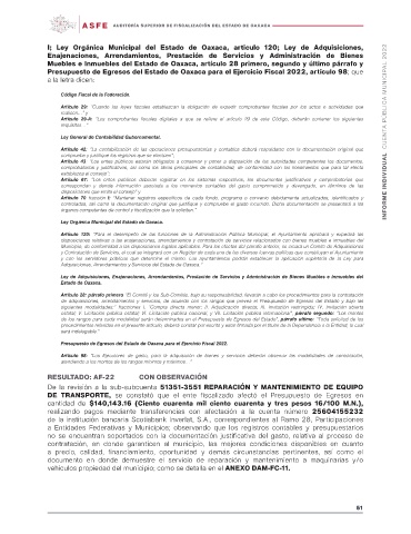 I; Ley Orgánica Municipal del Estado de Oaxaca, articulo 120; Ley de Adquisiciones,