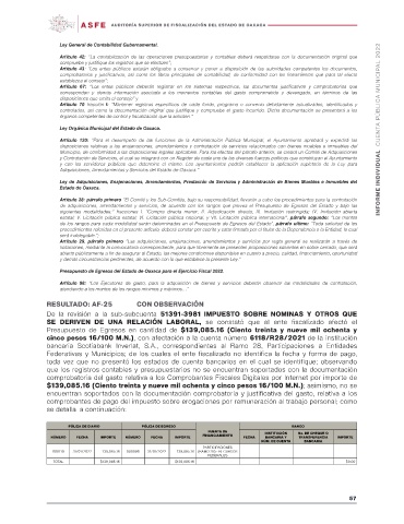 Ley Orgánica Municipal del Estado de Oaxaca. INFORME INDIVIDUAL CUENTA PÚBLICA MUNICIPAL 2022